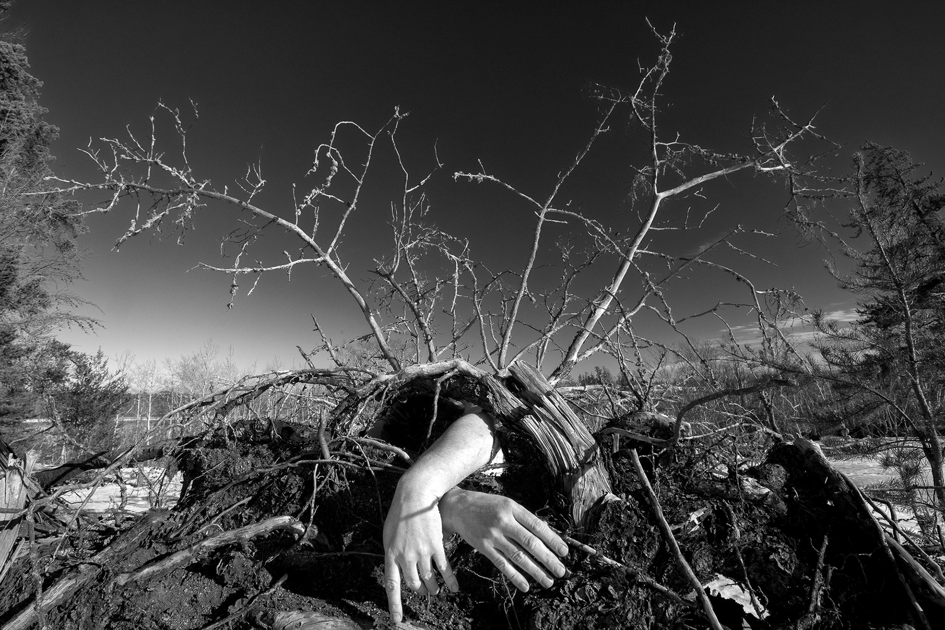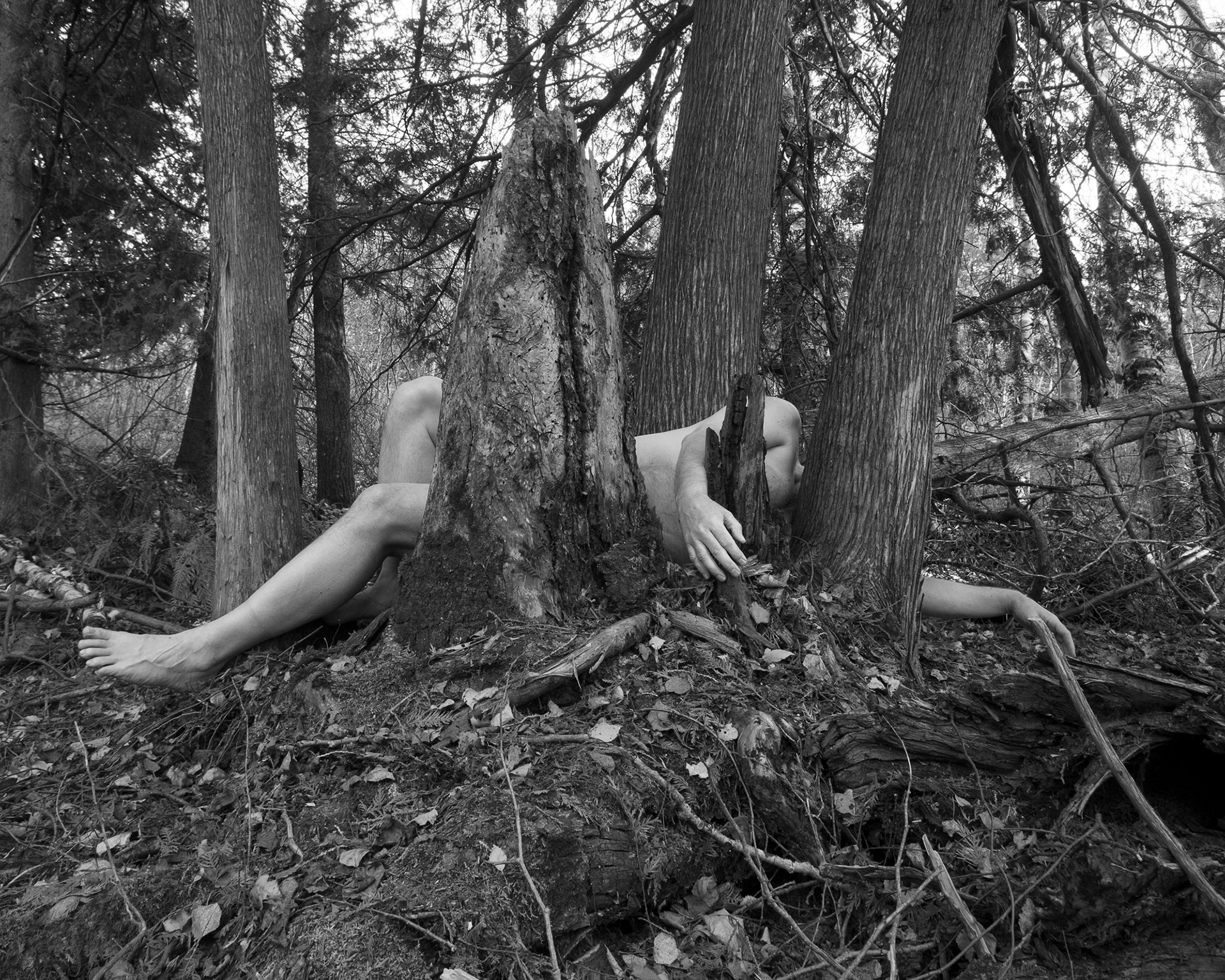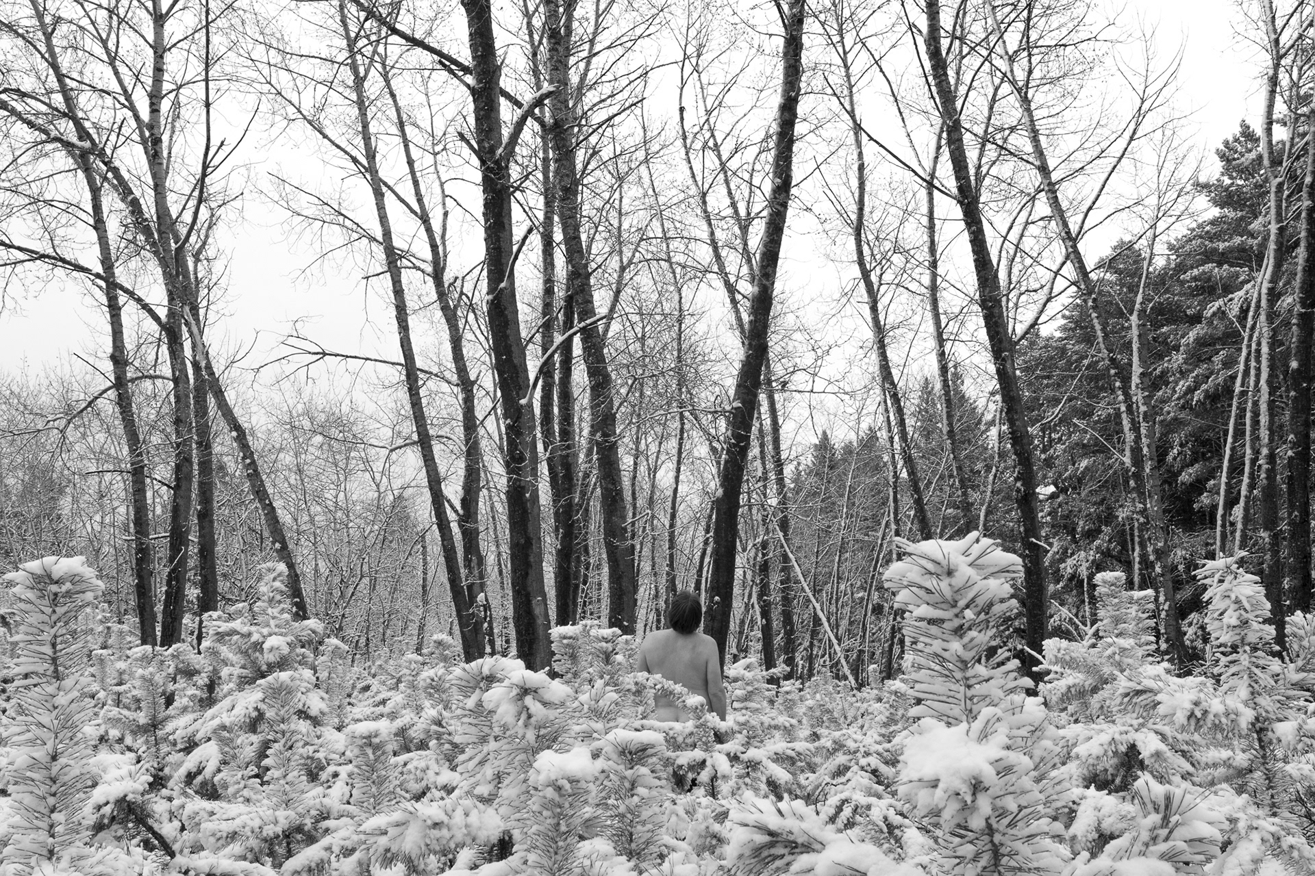 These photographs are part of a multi-year series of self-portraits taken throughout the Manitoba lakeland.