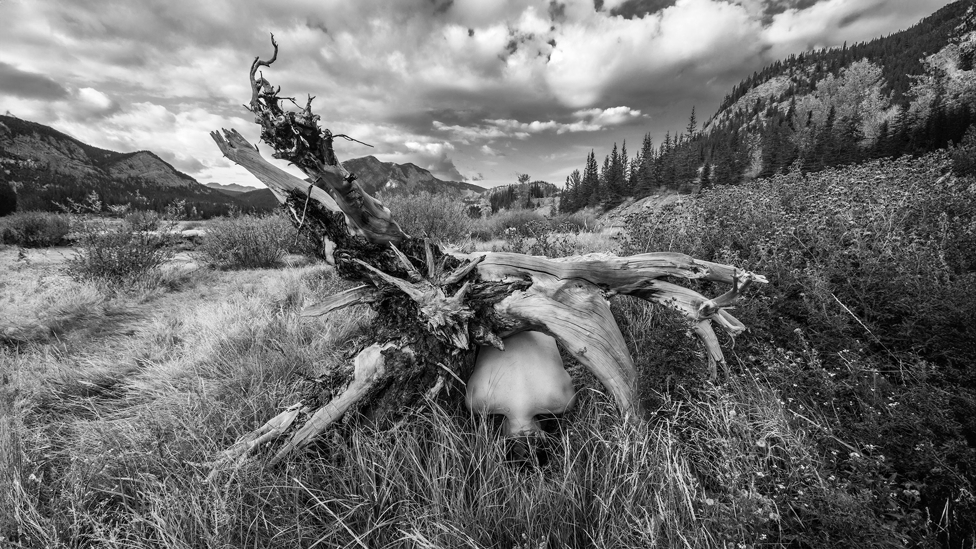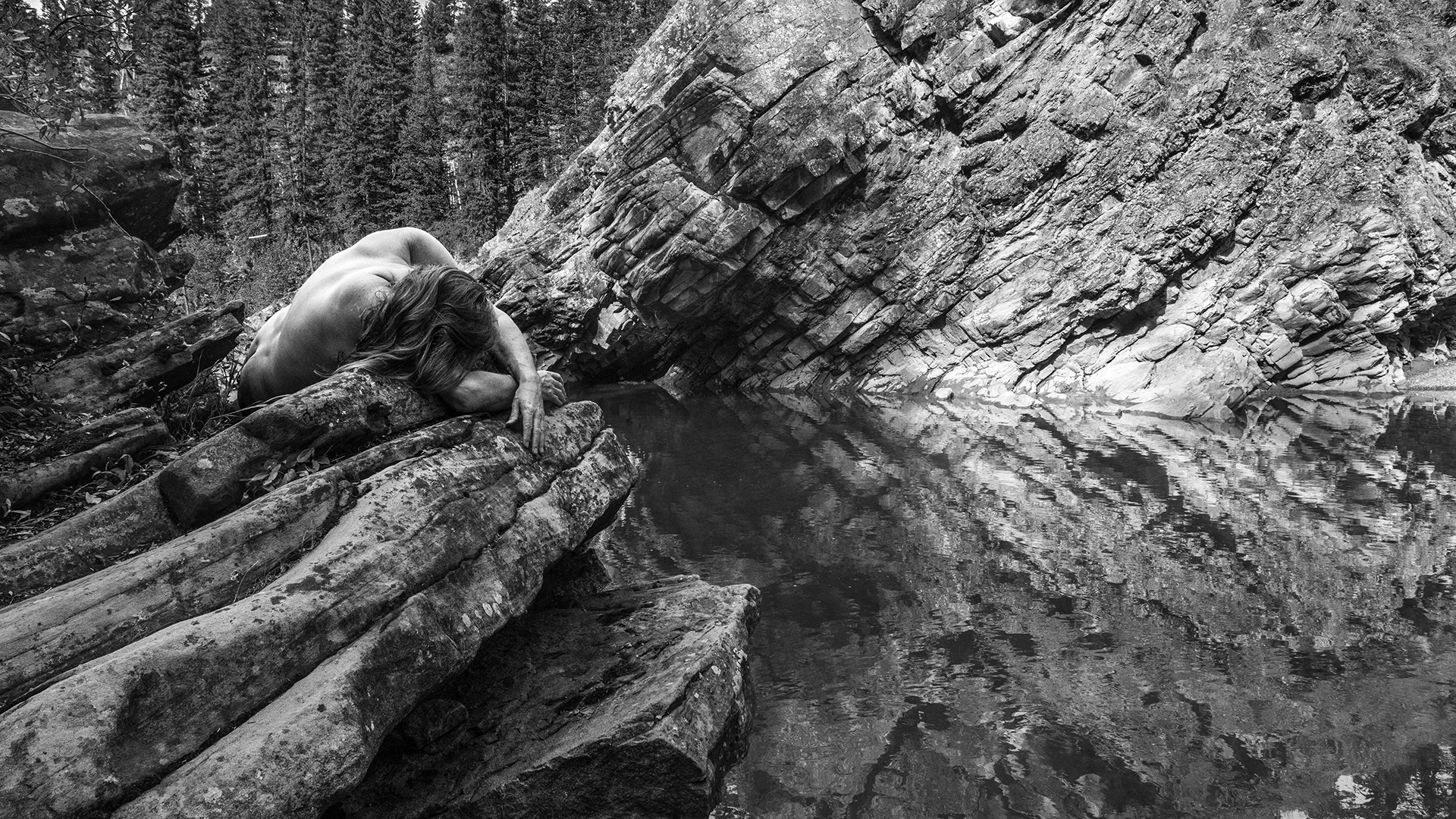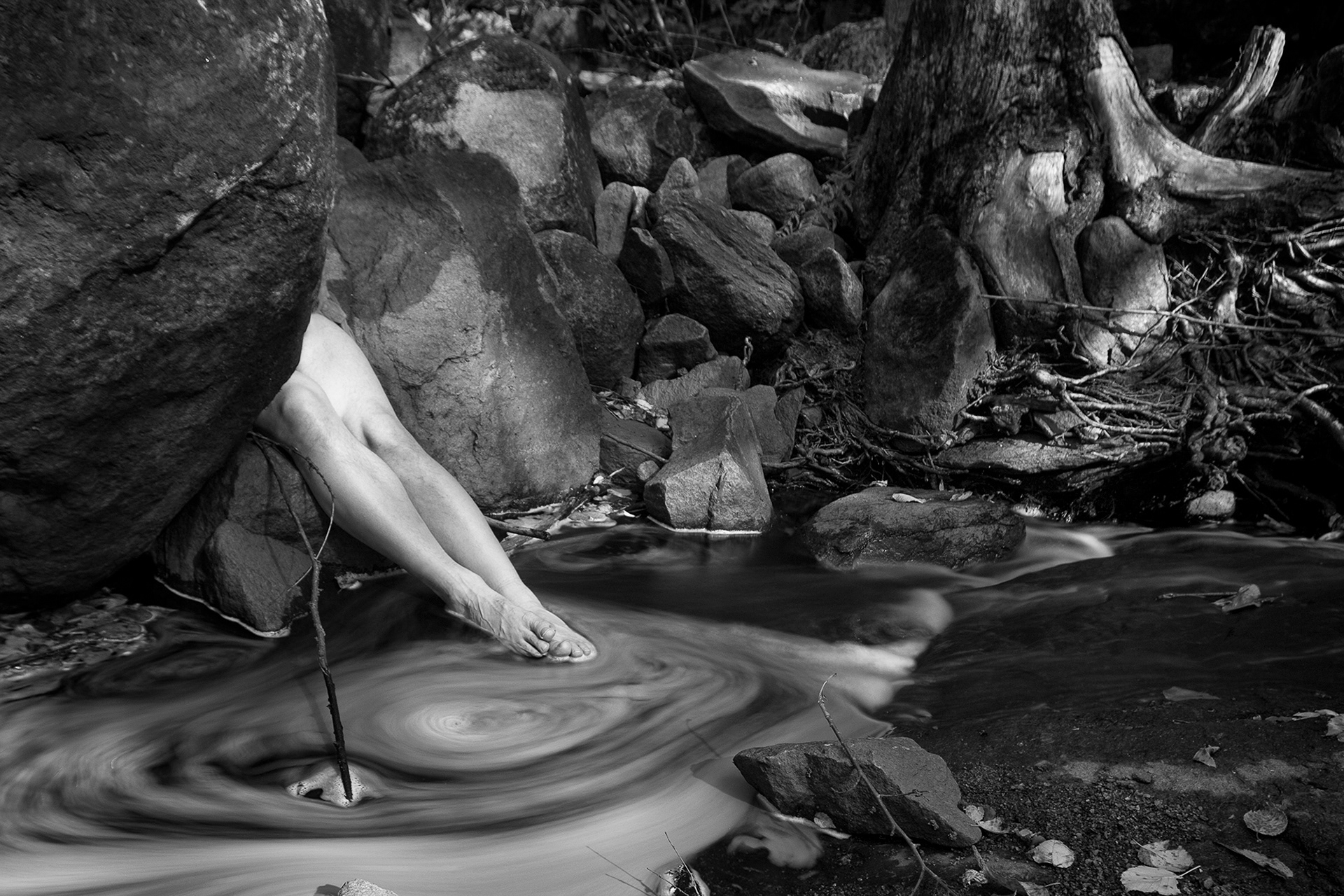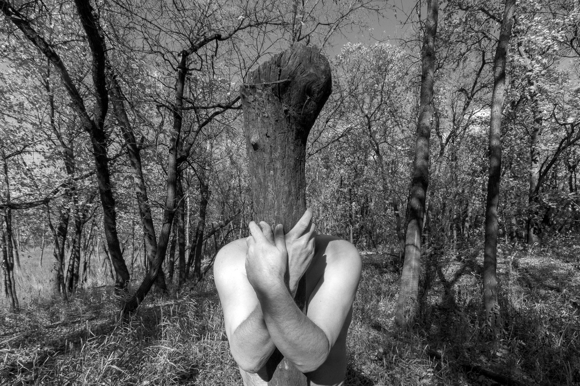 These photographs are part of a multi-year series of self-portraits taken throughout the Manitoba lakeland.